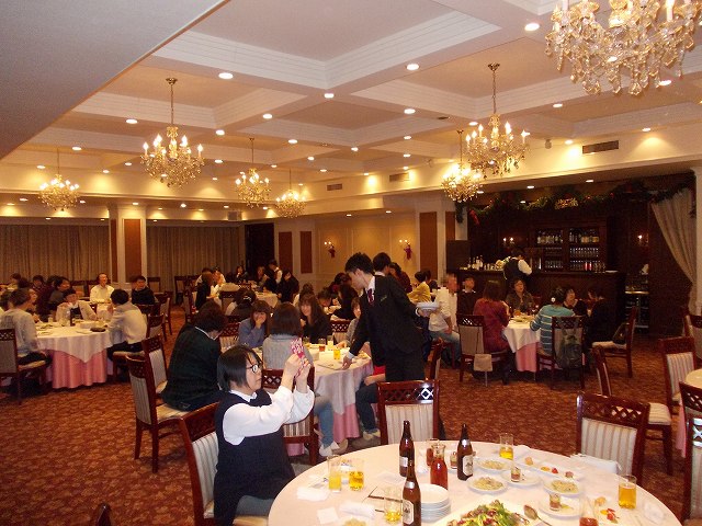 クリスマス昼食に笑顔です