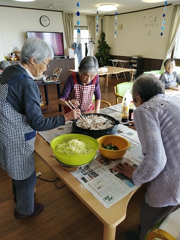 昨日は入居者の皆様と冷やし中華を作りました