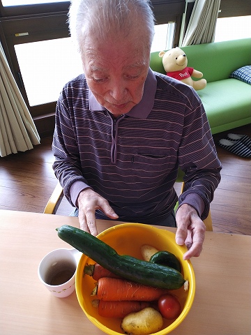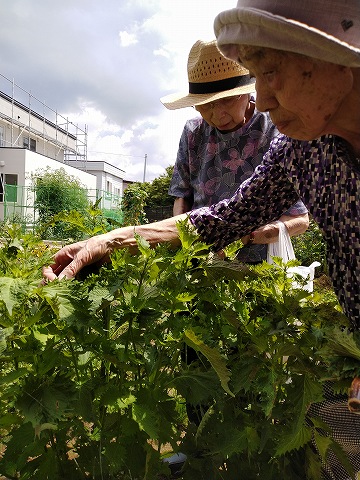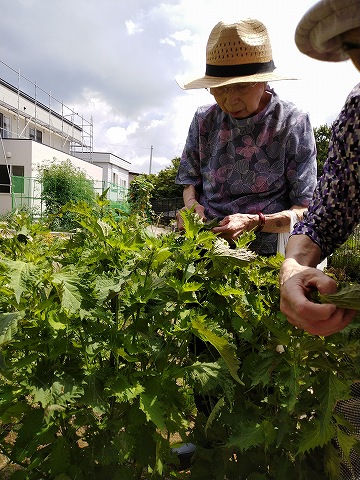 まずは第3シニアホームの畑で収穫した