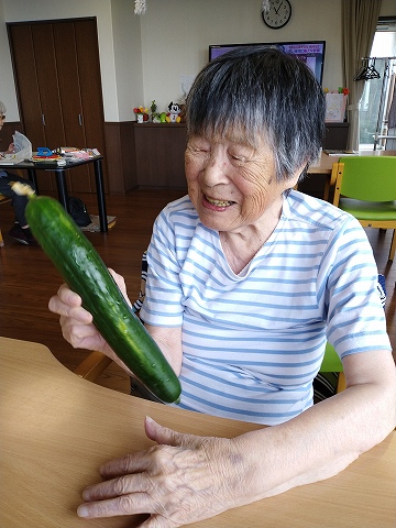 キュウリを切っていただきました。