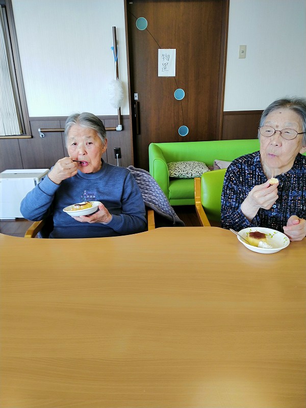 本日のおやつはプルプルのプリンです