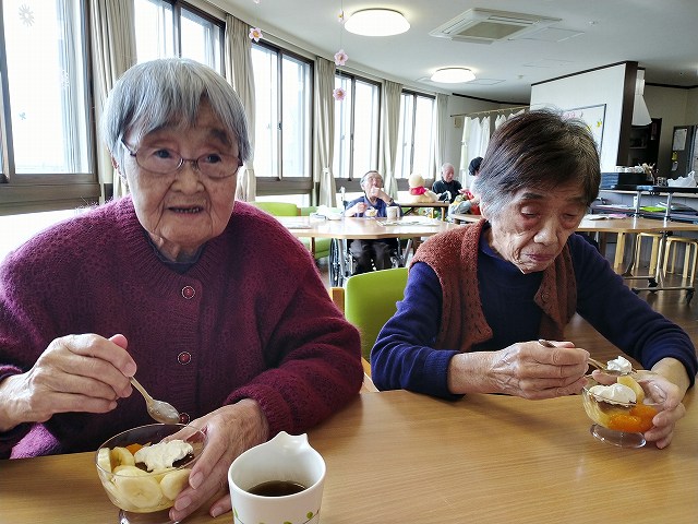 誕生会では皆さんであんみつを食べました
