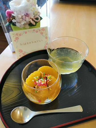 爽やかなフルーツゼリーを召し上がりながら、皆さんでお祝いしました。